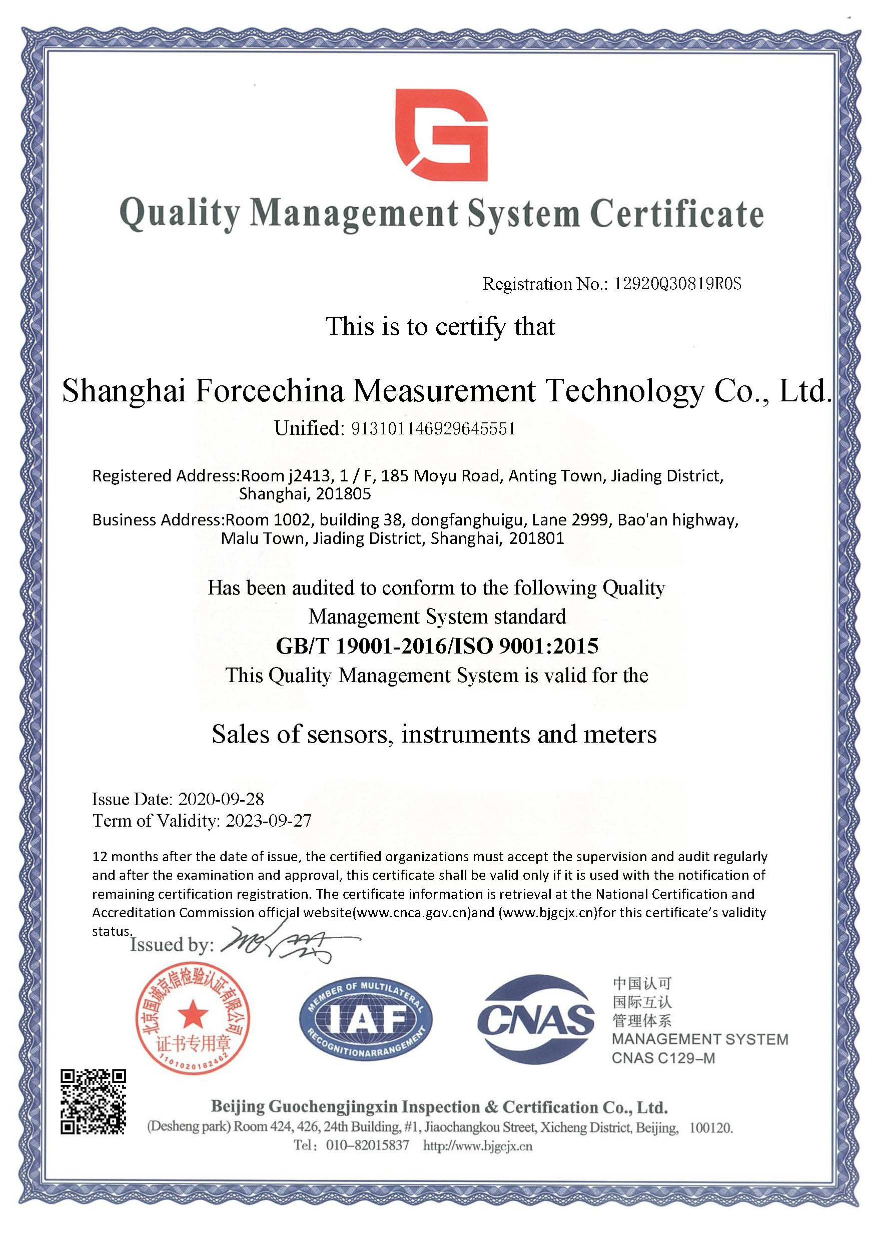 ISO9001:2015質量管理體系認證