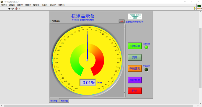 數據顯示界面,包含實時值顯示和力值(扭矩/轉速)曲線顯示;