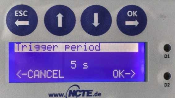 按OK鍵進入Trigger period里面,按上下鍵設(shè)置時間為5~10s(可根據(jù)測試間隔設(shè)定)按OK確認(rèn)