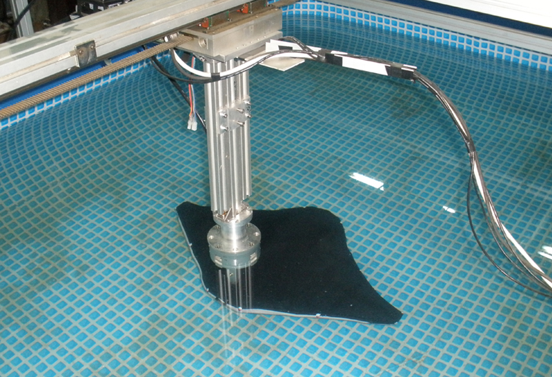 上海市某高校實驗室購買了我司的六維力傳感器進行該仿生學實驗,該實驗主要測試蝠鲼模型在水下運動時推進力產生大小及不同背面弧度參數對所受阻力的影響。